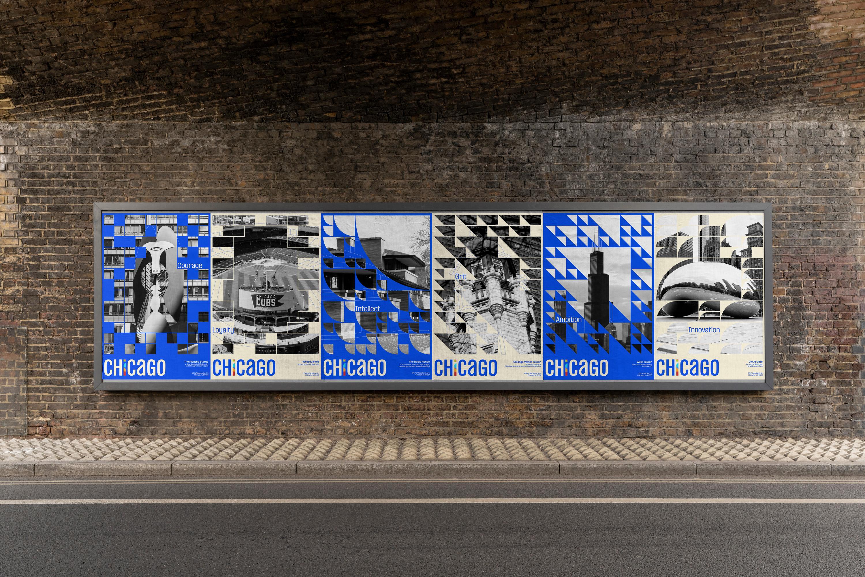 This project reimagines Chicago’s identity through a flexible visual system grounded in six defining traits: Grit, Innovation, Intellect, Ambition, Courage, and Loyalty. Together, these qualities capture the city’s resilience and its forward momentum.