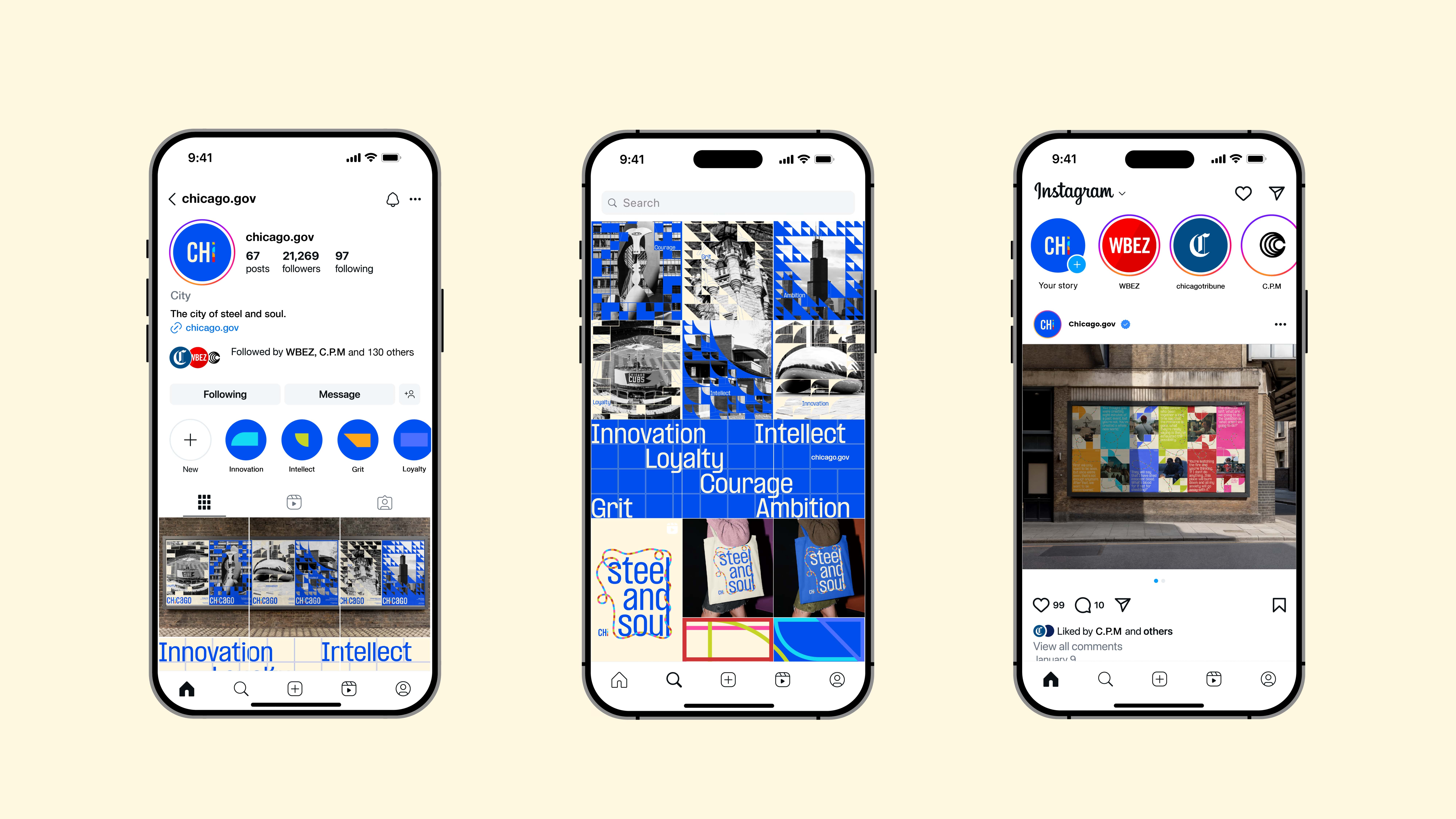 At the center of the branding is the highlighted “i” in Chicago, symbolizing the people who give the city its soul. Formed from six geometric elements—each representing one of the core attributes identified through research into Chicago’s culture and history—the “i” underscores that the city’s true strength lies in its citizens, their creativity, character, and vision for the future.