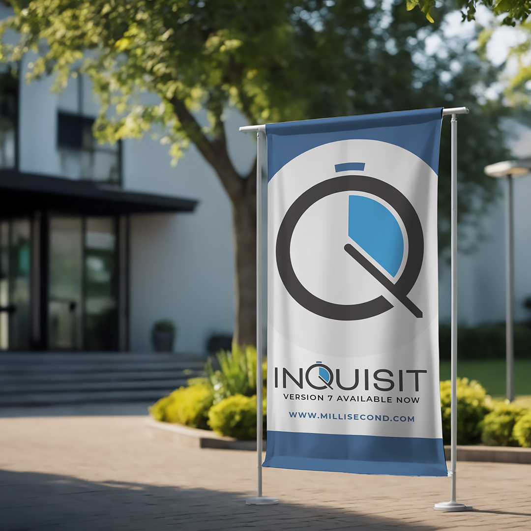 Located in Seattle, Washington, Millisecond is a leading provider of software for psychological testing. Its Inquisit platform has been used in an extensive and diverse body of peer-reviewed research as well as in applied domains such as marketing, usability, and clinical trials. Inquisit commissions a new logo to promote each major update, and Mad Dog has been fortunate enough to design logos for previous versions 5 and 6 (as well as the logo for the parent company, Millisecond). In 2024, Inquisit rolled out version 7.0, and once again Millisecond asked Mad Dog to provide the face of the new software. The logos always emphasize the “Q” in Inquisit, and the icon speaks to the measurement of response times in the testing.